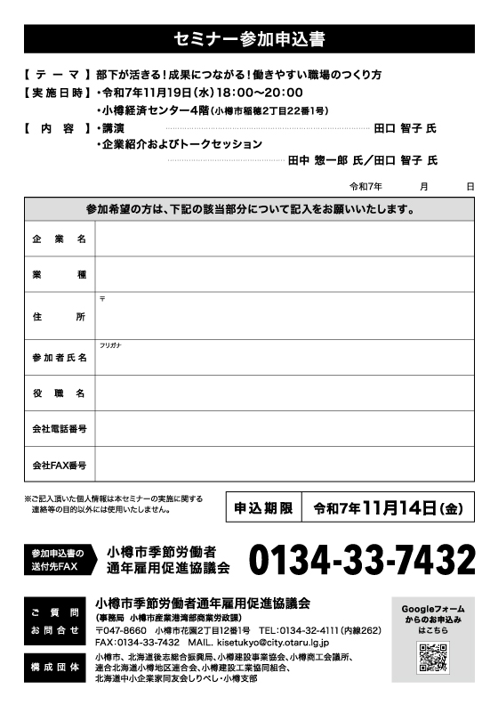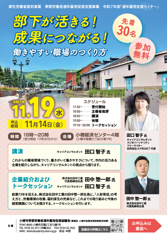 ・小樽市内の企業、人事担当者の皆さまへご案内です。